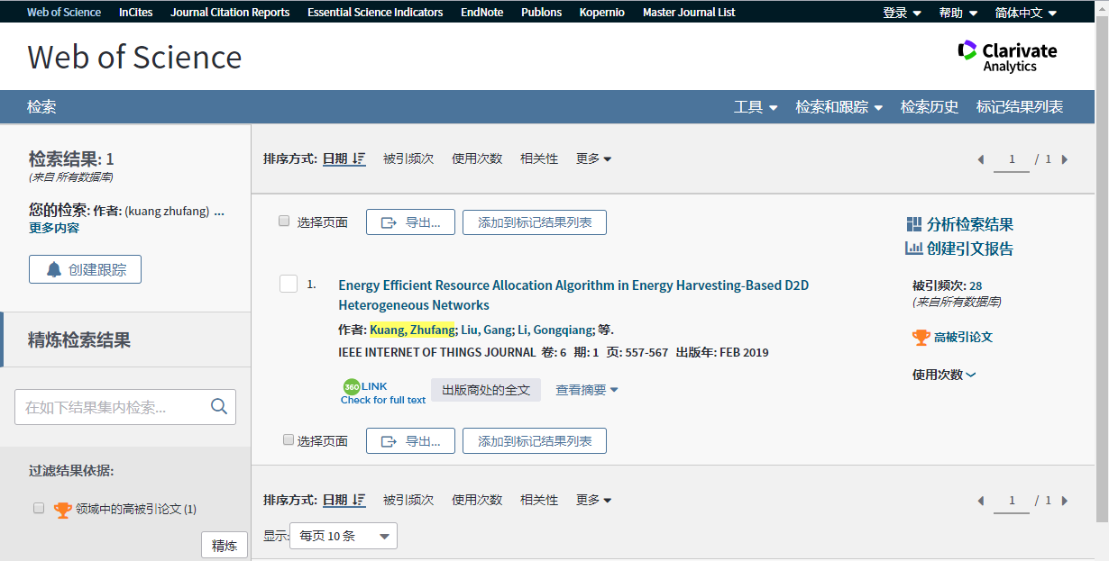 我院青年教师邝祝芳教授(第一作者)的研究成果《Energy Efficient Resource Allocation Algorithm in Energy Harvesting-Based D2D Heterogeneous Networks》进入ESI-Highly Cited Papers(高被引论文)排行榜,这是以我校为第一作者单位、计算机学科ESI高被引论文方面新突破,标志着我校新一代通信网络与大数据研究中心的科研水平又上了一个新台阶。